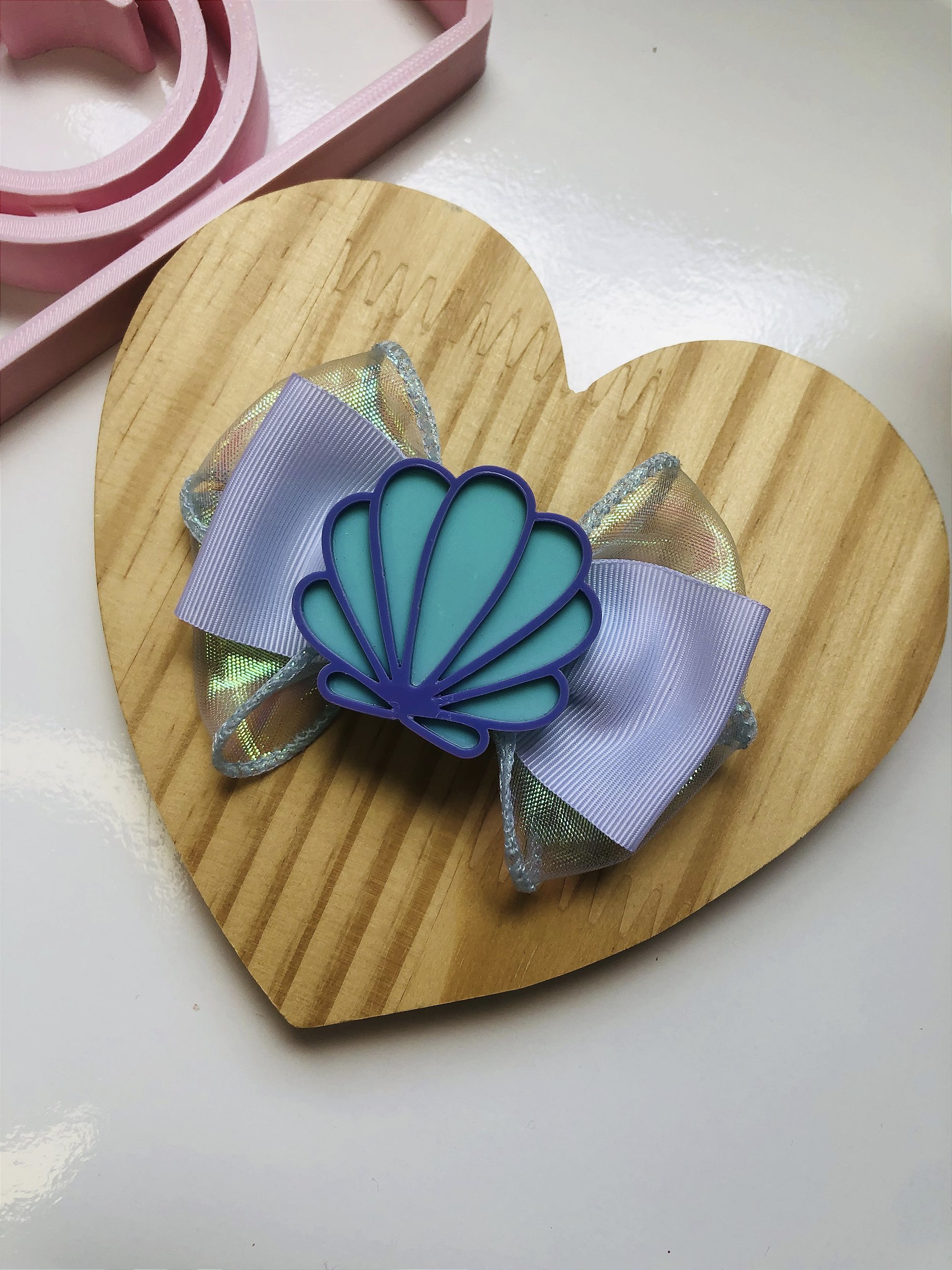 Laço coleção verão com aplique concha no bico de pato semi encapado. Tamanho 9 cm